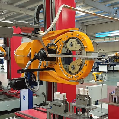 非接觸式3D示教系統(tǒng)為我公司最新研發(fā)。由一套尺寸僅為130*75*35mm的測量裝置組成,安裝于包帶機包帶頭上,配套程序內(nèi)置于包帶機系統(tǒng)內(nèi)。適用于我司不同型號的CNC及機器人包帶機使用。此示教系統(tǒng)的導(dǎo)入,結(jié)束了人工示教操作的歷史,從而改善了線示教精度的穩(wěn)定性,因此提高了包帶品質(zhì)。